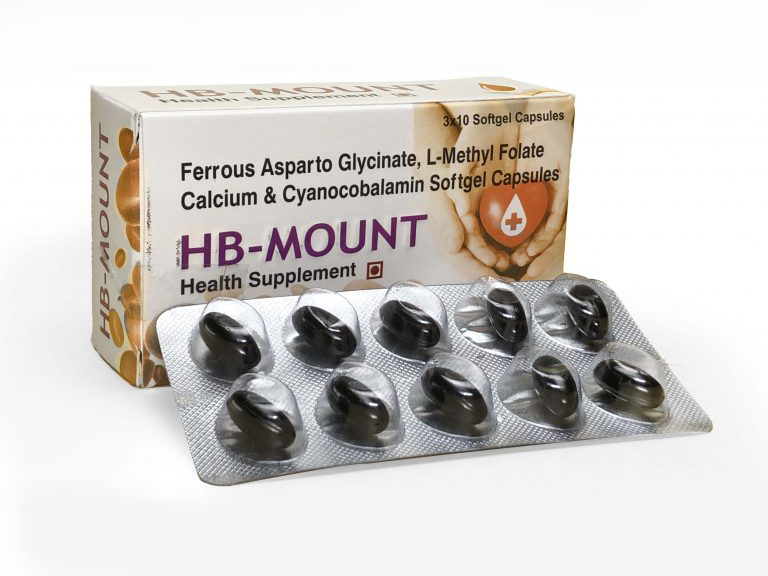 is a new age iron which is a chelated salt and easily gets absorbed by the body. This will get absorbed more than 90% into the body so that there will not be any residual effect which causes constipation for many women. Methylcobalamin in HB mount will take care of hyperhomocysteinemia. L methylfolate will serve the daily requirement of Folic acid.